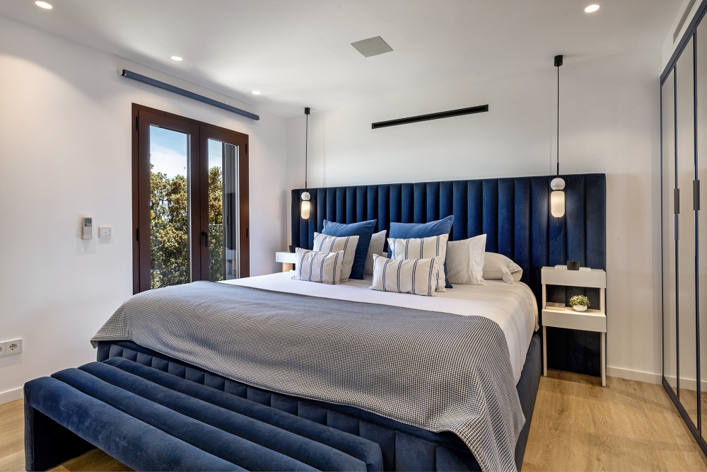 Die Villa verfügt über geräumige Innenräume, in die das natürliche Licht durch große Fenster in jede Ecke strömt. Das im zeitgenössischen Stil gestaltete Wohnzimmer verbindet sich mit einer modernen, voll ausgestatteten Küche, die ideal ist, um gemeinsame Momente mit Familie oder Freunden zu verbringen. Die großzügigen und gemütlichen Schlafzimmer sind so gestaltet, dass sie maximalen Komfort bieten, jedes mit Panoramablick, der zum Entspannen einlädt.